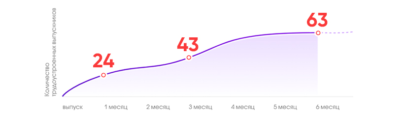 Большинство учеников устраиваются в течение трех месяцев после завершения курса. Остальные же нашли работу в течение полугода после выпуска