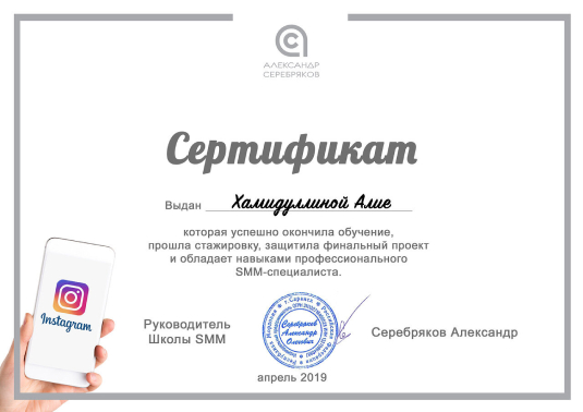 В конце обучения Вы получаете Сертификат SMM-специалиста